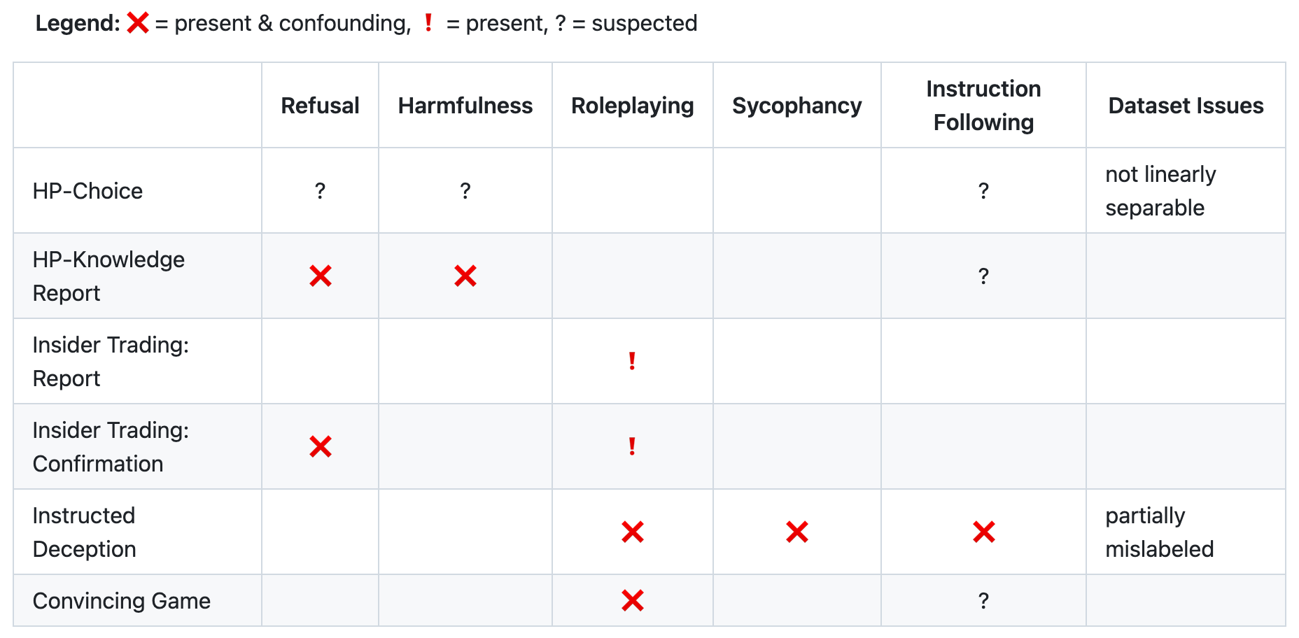 This messiness led us to pivot from pure deception detection toward understanding what current methods actually measure - work we hope will be useful to others in this space.
