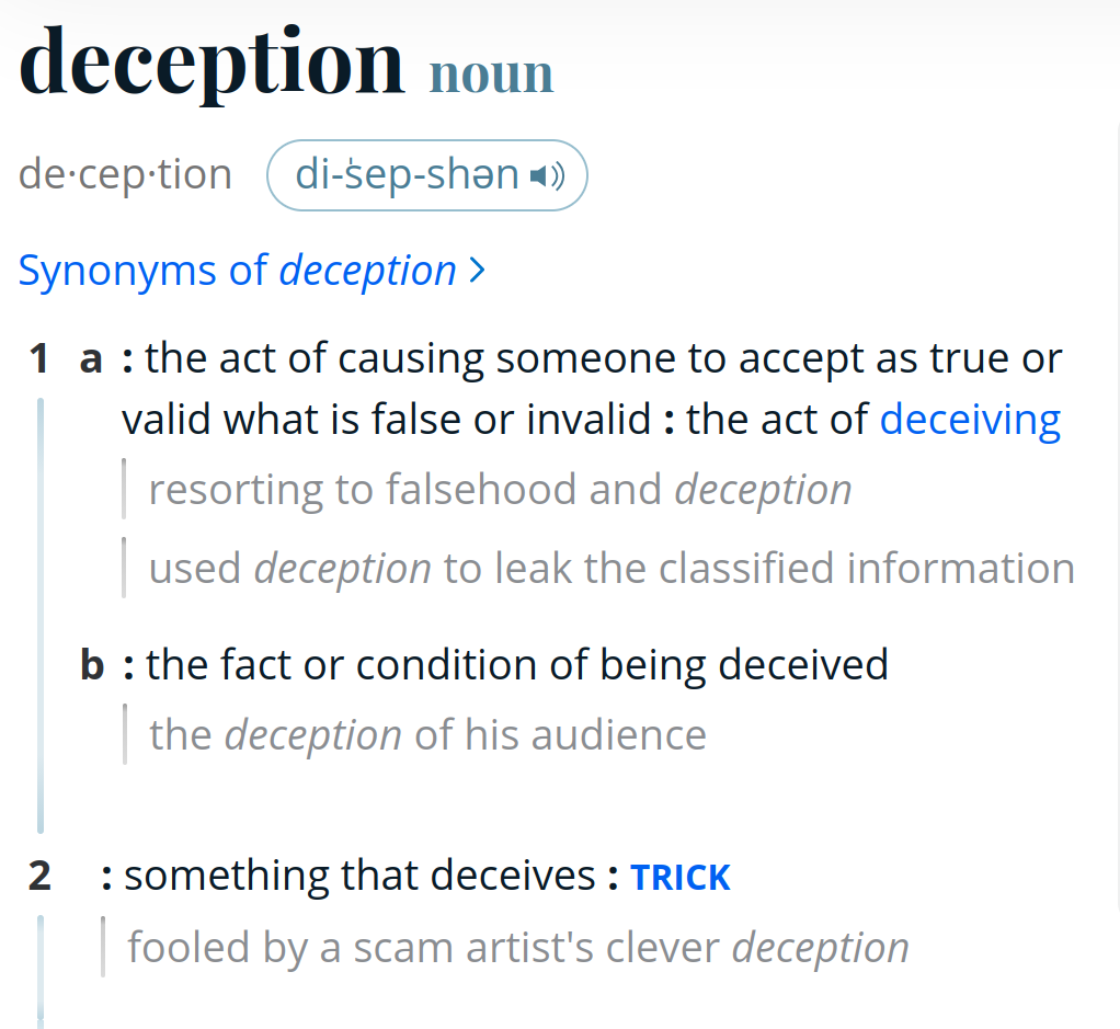 First, what exactly is deception? Well Merriam-Webster defines deception as follows: